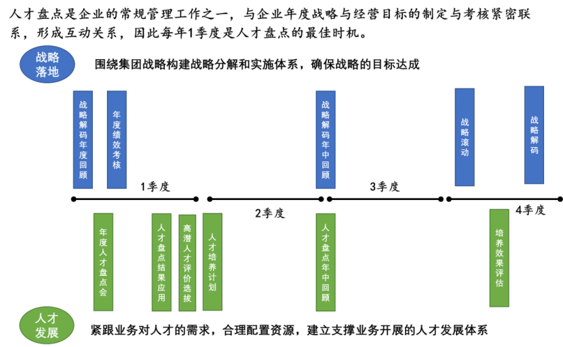 在组织的业务发生一些转型,或者是一些新业务要开拓,或者说一些原有的业务要发生方向性的变化的时候,这个时候高层往往最痛苦的一件事情就是发现人到用时方恨少,业务要转型,但是人还没转,人的思想意识没转,人的能力结构没转,团队的结构没转,跟不上业务的转型。这种情况下人才盘点怎么样走在业务变革的更前沿一些,铺垫的更早一些,就显得至关重要了,这也就是为什么人才盘点要做得足够有战略性的话,就一定要跟组织的战略方向和他的业务高度结合,需要更早的去做这方面的准备工作。