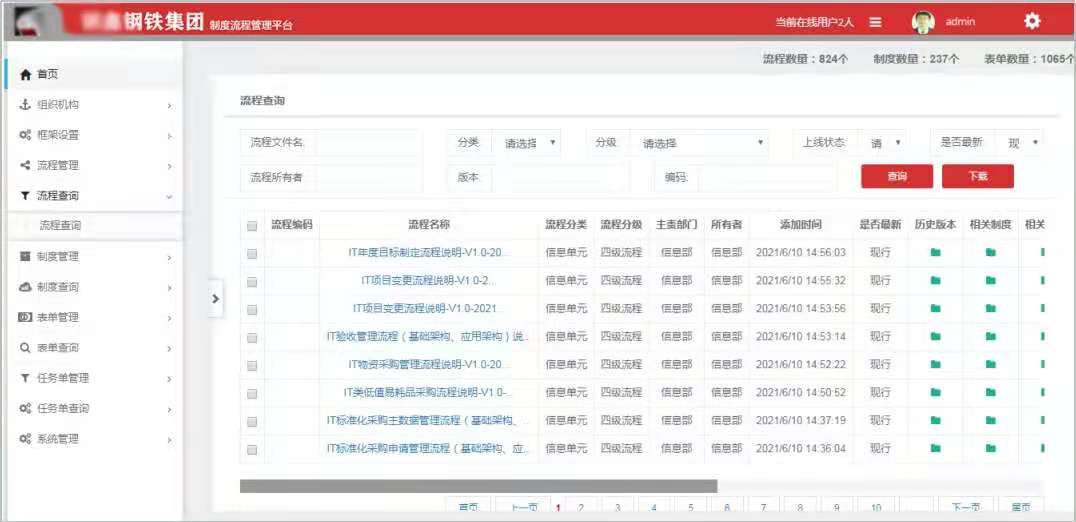 2、实现全部流程在信息系统内的发布、查看、使用、更新,以及与其他管理文件的关联;