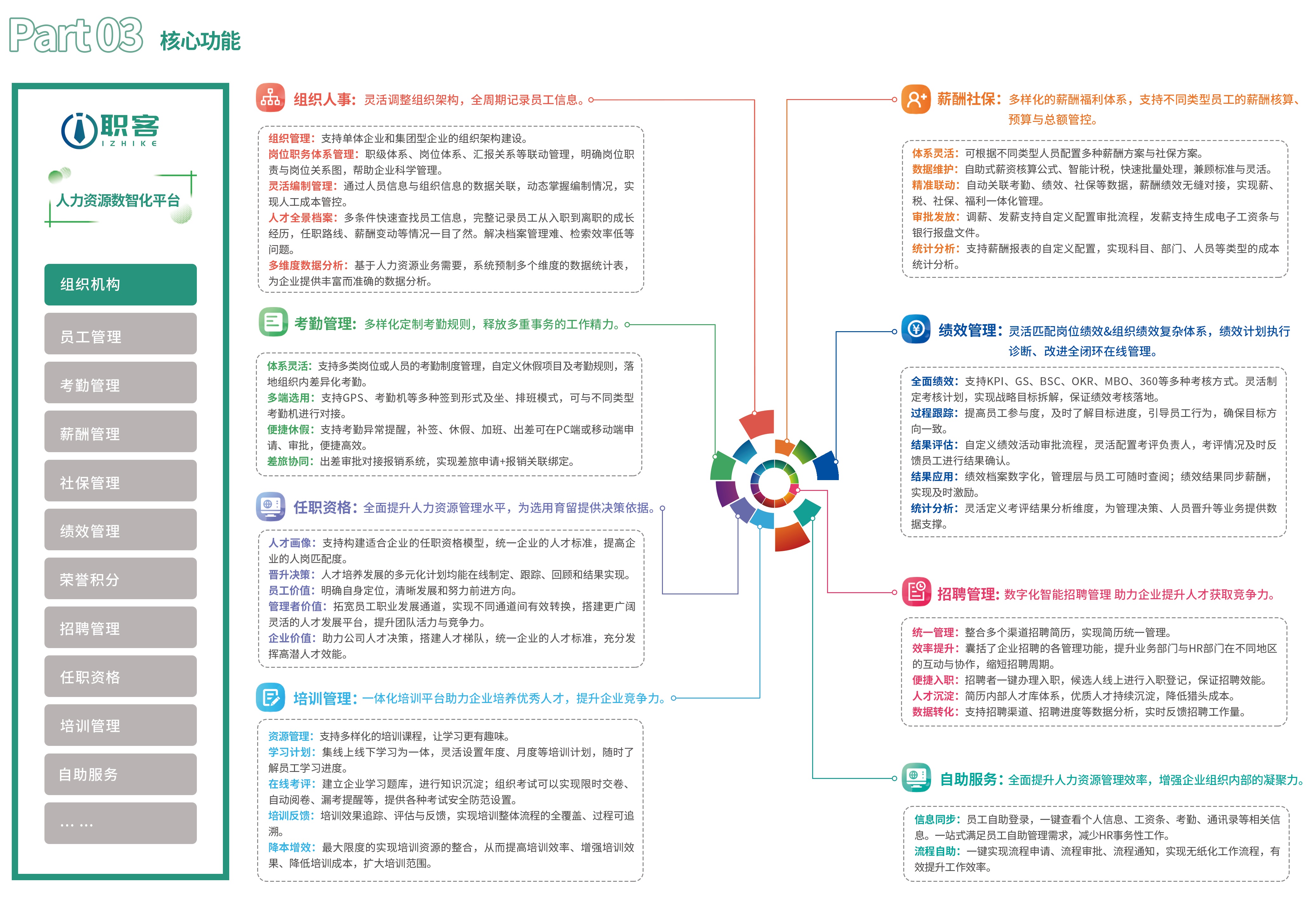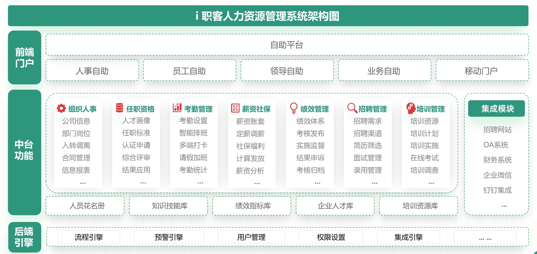 太阳成集团tyc122cc入口i职客支持单体企业或中型集团企业使用,支持平衡计分卡、KP1、OKR、360等多种考核方式混合使用,支持岗位职能工资、宽带薪酬、计时计件工资、提成奖励等多种类型的薪酬模式,以及针对任一组织的薪酬预算与总额管理;支持最复杂的任职资格体系搭建以及全流程评价管理:支持线上、线下一体化的培训计划、课程管理、培训实施与效果评估。单纯从各模块的专业性来看,均可与同类单项产品媲美,对于具有一定管理基础的企业来说,产品的功能相对全面和实用。