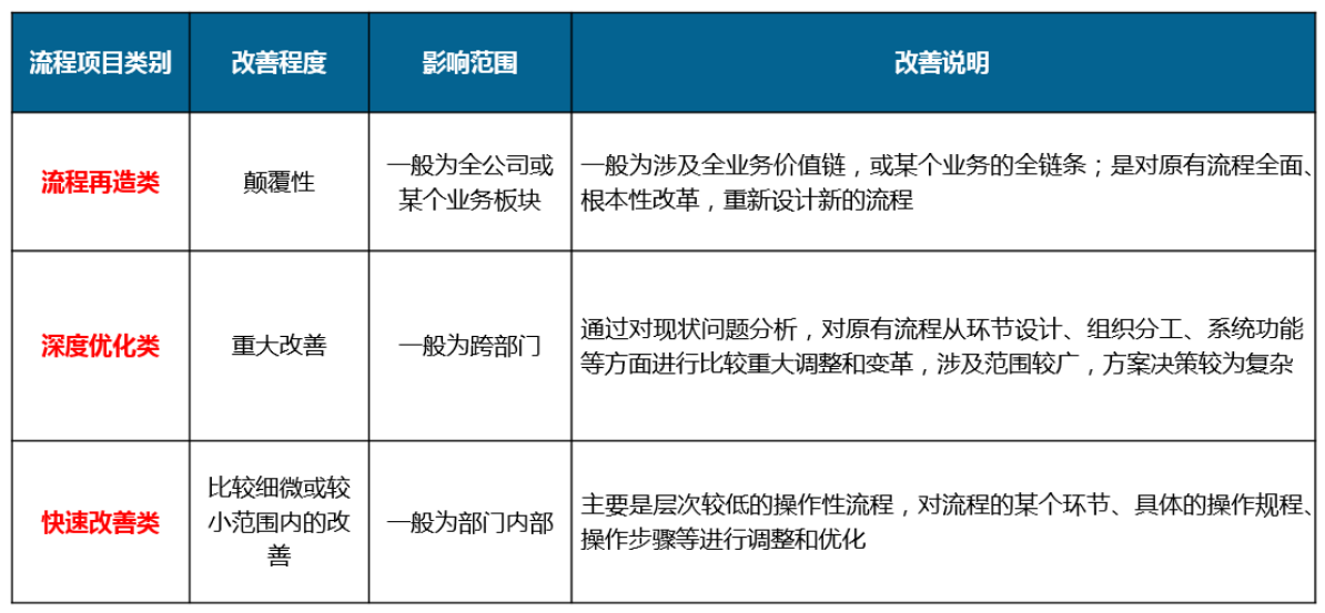 此处的流程体系建设与优化,主要包括流程基础建设、流程快速改善和部分深度优化工作。