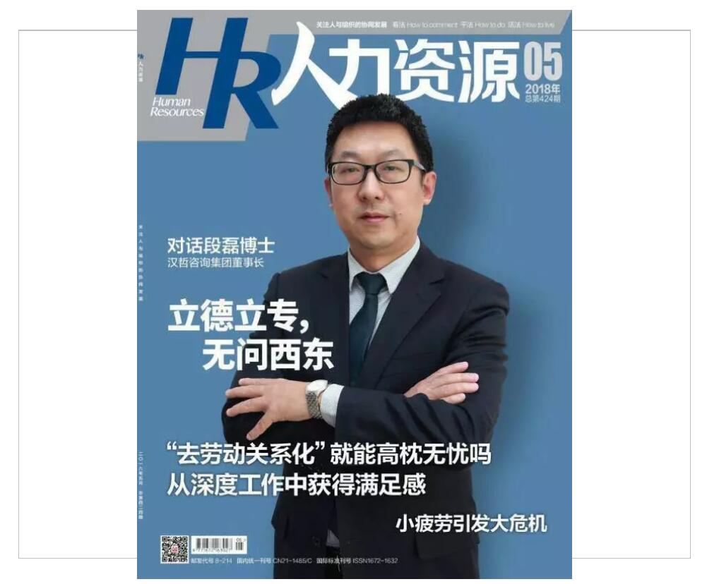 《人力资源》杂志2018年第5期(总第424期)以太阳成集团tyc122cc入口咨询(股票代码:832830)首席专家段磊博士为封面人物,刊登了题为《立德立专,无问西东》的专题对话访谈录。