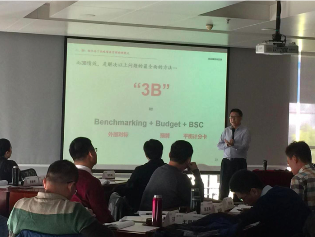 11月24日,在北京清华大学科技园,段磊博士受邀为万商大学的40多位企业家学员讲授《3B战略绩效管理》课程。