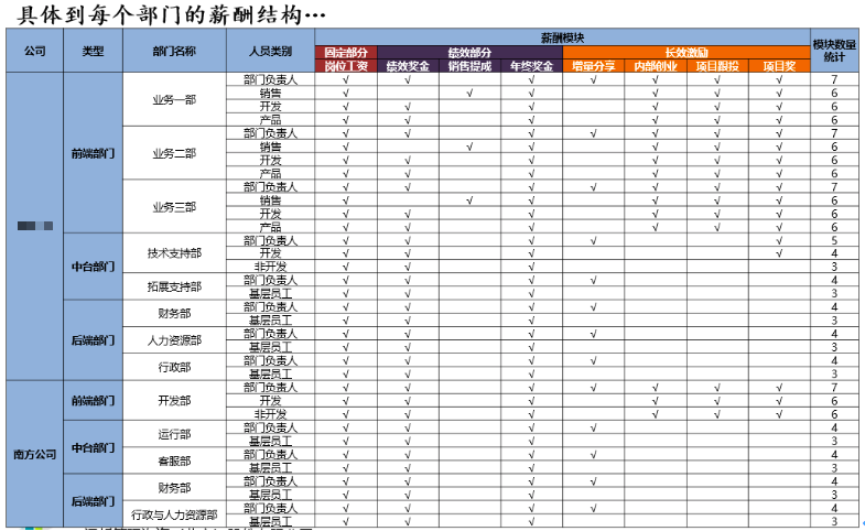 1、对标研究:项目组分别选取10家公司的5个模块进行对标,对企业的业务模式、组织结构、薪酬、绩效、长效激励模式提出启示和建议。
