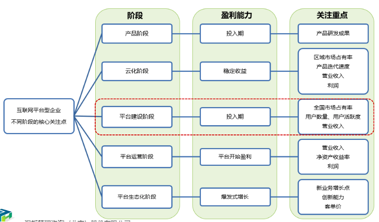 其中,《长效激励方案(公司级)》中创新性地提出了互联网平台型公司的发展阶段和特点: