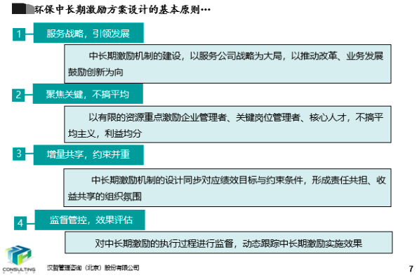 3、设计公司中长期激励体系。结合公司行业特性、具备资质、业务特点及国家相关政策要求,甄选出适合公司的中长期激励方式,明确不同激励方式所对应的激励对象,设计合理的中长期激励体系,制定配套的中长期激励管理制度,为公司新环境下战略目标的完成提供牵引力。