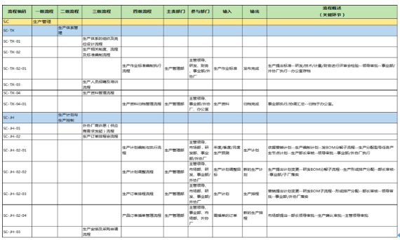 第三阶段:主要为二批流程优化、流程配套文件编写,包含生产管理、采购、仓储、交付、技术服务、质量等流程设计(含表单)。