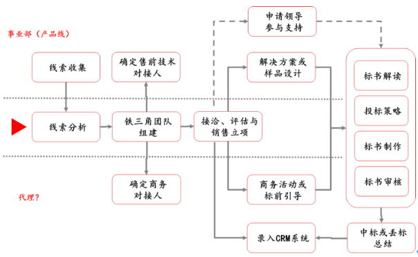 针对个细分模块,建立基于市场的流程运行逻辑,如单一项目线索跟进与成交的业务运作逻辑如下: