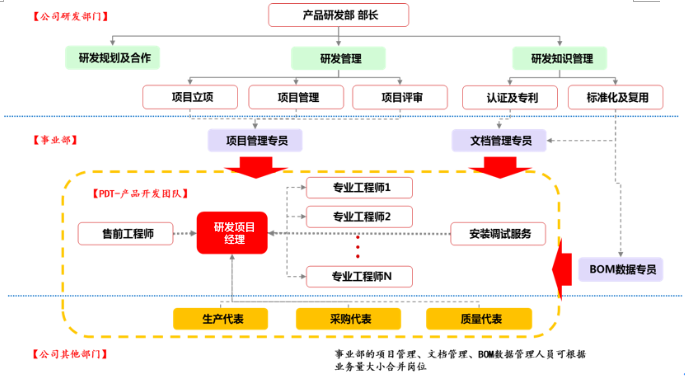 再如,研发系统,明确研发管理部门和各事业部研发的功能界面、组织体系和业务运作逻辑:
