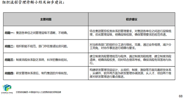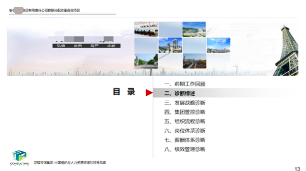 项目启动之初,通过内部资料研究、企业深度访谈、员工调查问卷、外部标杆资料对比,政策研究等维度对集团发展战略、集团管控、组织流程、岗位体系、薪酬体系及绩效管理系统进行了全面诊断,发现问题并提出改进的思路。
