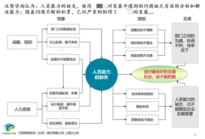 经过项目组诊断,我们认为,公司目前主要的问题在于人才的匮乏。