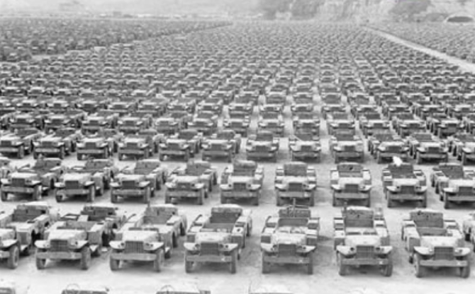 据统计,二战期间,美国生产了86万辆坦克、29.6万架飞机,1500万支步枪,410亿发子弹,5400艘商船,6500艘军舰。这样的惊人产能,是靠把几乎所有的工业力量转入战争方向来实现的。借用唐纳德·尼尔森(1942年-1944年,任战时生产委员会主席)的一句总结:“战时生产,恐怕是历史上最伟大的集体成就。”