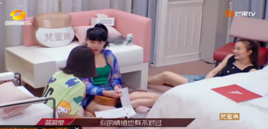 情景7:某次采访中,张雨绮指出李斯丹妮应该多花点时间在自己的团队上,大家多沟通磨合。蓝盈莹想让李斯丹妮过去帮忙教舞蹈,张雨绮直接拒绝,说自己团还没有练习到位,还是一塌糊涂。