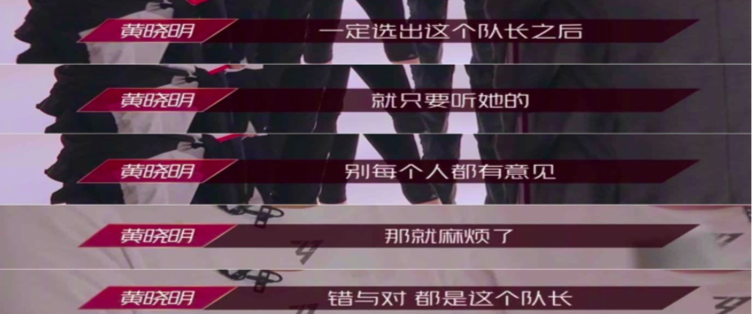 节目组聘请了三位具有相当影响力的女团专家作为评委,同时邀请“黄教主”作为主持人。站在以上四位“专家”的角度上,对成为团队leader应该具备的能力素质也会有自己不同的看法和意见。笔者从中也能提取相应的领导力要素。