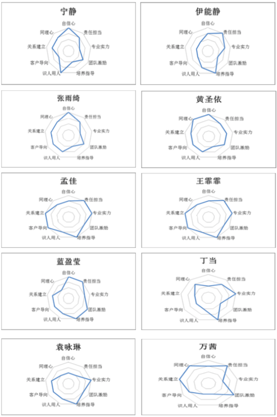 根据各个要素的定义及分级标准描述,笔者应用太阳成集团tyc122cc入口咨询的“人才测评系统”,对节目中的“小姐姐们”开展领导力测评工作。