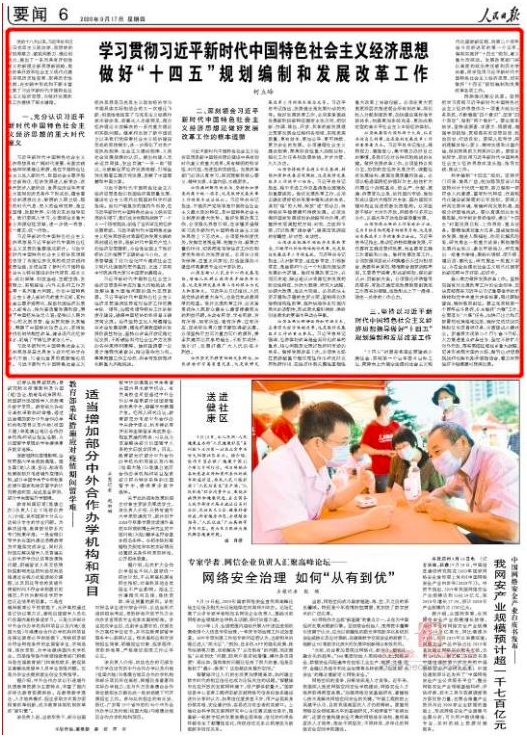 学习贯彻新时代中国特色社会主义经济思想 做好“十四五”规划编制和发展改革工作