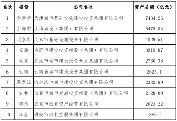 根据《城投蓝皮书:中国城投行业发展报告(2018)》报告显示,城投前100强企业中,前三名为天津城市基础设施建设投资集团有限公司、上海城投(集团)有限公司、北京市基础设施投资有限公司,资产规模分别达到7434.26、5475.83、4829.51亿元,资产规模都较大,与排名靠后企业拉开较大差距,100强企业中除前35名外,大部分企业资产在1000亿元以下,排名靠后企业资产不到500亿元,我国城投公司规模不一,发展参差不齐。