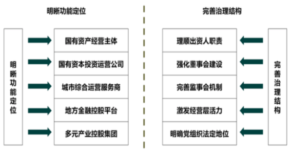 进一步明晰功能定位,完善公司法人治理结构。43号文之前,城投公司的功能定位即是政府融资平台,43号文出台后明确要求剥离城投公司政府融资职能。因此,长期以来依赖政府,缺少市场化运作经验的城投公司转型真正实现政企分离、自主经营成为首需解决的问题。