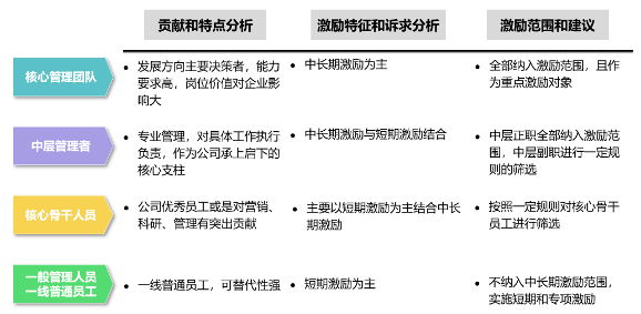 股权激励应倾向于公司具有战略价值的核心人才,拥有关键技术或关键资源或支撑公司运营核心环节或掌握核心业务的员工。公司在激励对象选择时建立筛选规则,本着宁缺毋滥的原则,对少数重点核心人才进行激励。