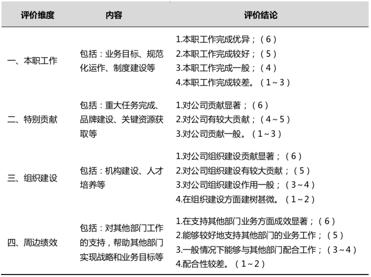 在绩效维度,直接采用本公司年度绩效考核结果,如没有绩效考核数据,那么通过设计便捷的绩效考核评价方法进行评价。
