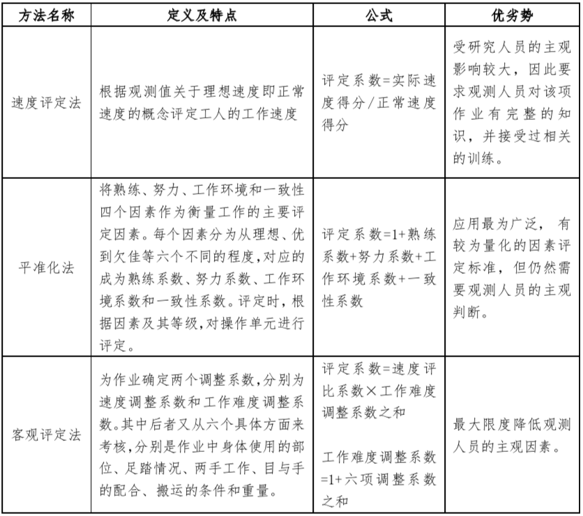 在生产管理中,针对作业评定常用的方法有以下几种: