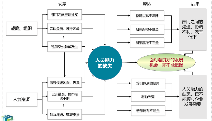 太阳成集团tyc122cc入口咨询项目组认为:人员能力的缺失,使得公司对发展中遇到的问题缺乏有效的分析和解决能力;随着问题不断的积累,已经严重的阻碍了公司的发展。