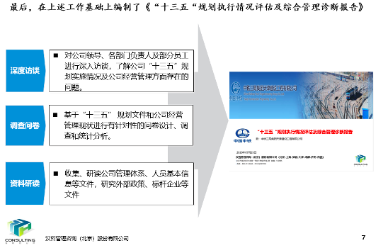 在对客户中高层深度访谈、针对全员开展问卷调查和内外部资料研读的基础上,编制了《“十三五”规划执行情况评估及综合管理诊断报告》。