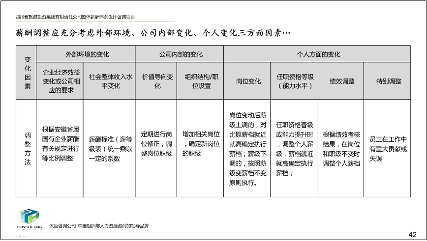 3、优化薪酬档位确定模式。根据集团岗位特点、市场化需要以及职业发展通道的再构建,加强外部环境、内部变化和个人能力在薪酬中的体现,明确薪酬档位的调整模式,促进员工能力的自我提升,从而增强企业的市场化竞争力。