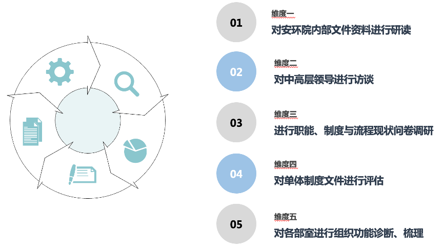 通过资料研读、访谈、问卷调研、单体制度评估等方式,对公司当前的制度与流程体系进行全面的诊断评估。