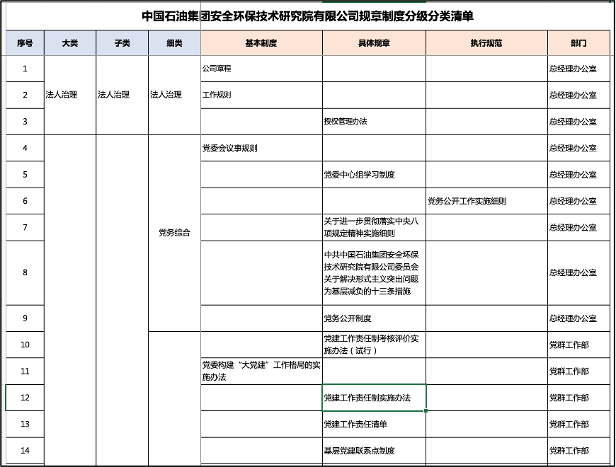 梳理需要编制的各项制度的清单与各项流程的清单,确保各项制度无遗漏、重复、交叉等。