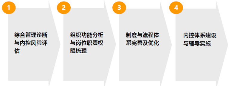 4、基于以上分析,本次内控体系建设以满足外部监管要求为基础,以提升内部管理效率和效果为目标,兼顾风险和效率,充分吸收借鉴其它企业先进实践,立足于企业实际,系统的建立内部控制体系,项目按照如下四个模块设计与组织实施: