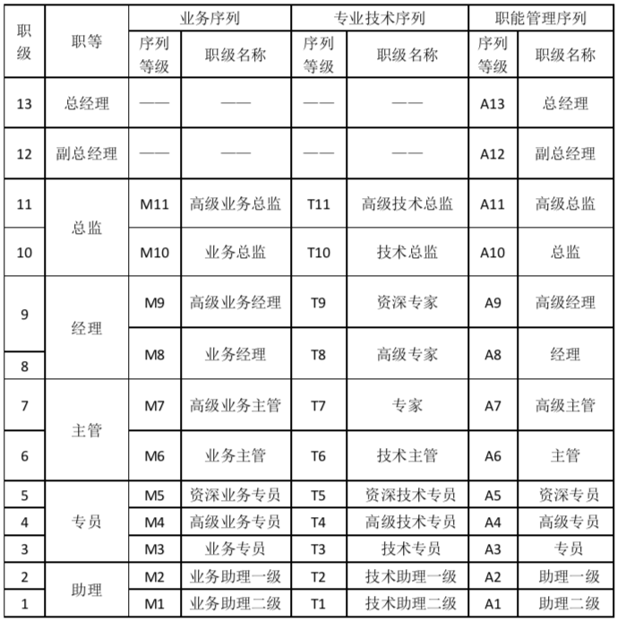 根据公司管理需要,结合公司现阶段发展特点、行业特点,以及未来人力资源管理进一步要求,规划职级体系和晋升通道,并明确职级评定、调整规则,为员工提供成长空间和职业发展指导。