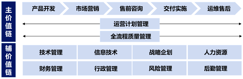 例如:针对软件企业,参见上图,笔者勾勒出了企业价值链核心细分环节,企业可以初步将上述每个价值链环节均作为一个序列进行设置,之后再详细参考下文所提到的岗位战略重要性、人才培养理念、岗位任职人员规模等因素对序列划分结果进一步做出调整。