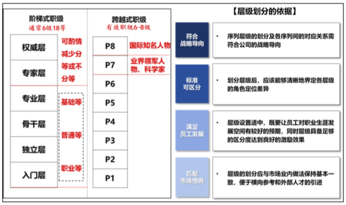 当然,除参考市场经验外,企业还需要考虑内部实际情况,尤其是各序列实际情况来进行层级划分。专业壁垒、战略重要性差异较大的序列在层级划分上也会有一定区别。