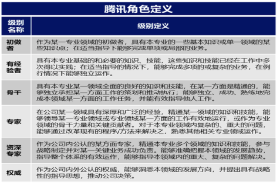 在序列划分基本确定后,就需要考虑另外一个问题,即单个序列内层级如何划分。随着越来越多的企业开始设计职级体系,笔者建议层级的划分应对标市场主流经验进行设计,即职级体系应与用人市场进行接轨,这样更有利于未来的外部人才筛选和内部人才评价。通过对公开资料进行研读,笔者整理总结了目前市场中几家典型企业的层级划分经验: