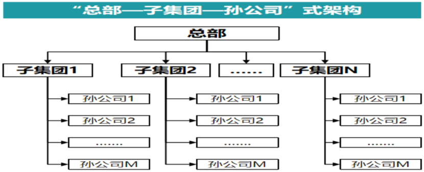 该组织架构模式下,整个集团从母公司到下属成员企业在法理架构上形成母公司、子集团、孙公司三个层级;子集团作为专业化的业务模块管理平台,对下属孙公司进行业务专业化管控,最终在集团整体管控运作上表现为母控子、子控孙。