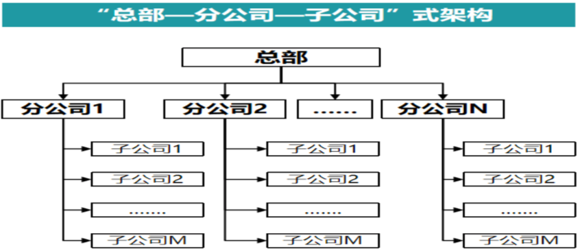 该组织架构的总部和下属成员企业以“母子公司”形式存在,均为独立法人;在中间设置区域分公司,为非独立法人,与总部形成“总分”架构;区域分公司作为区域内成员公司一体化集中管理平台,最终在集团整体管控运作上表现为总控分、分控子。