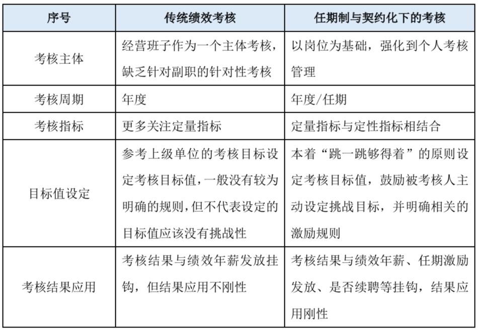 在为众多国企客户服务的过程中,很多客户发出这样的疑问:开展任期制和契约化管理后到底与原来的传统干部管理模式有哪些区别?今天笔者结合国家相关政策要求和客户服务过程中的浅薄经验对二者的区别进行如下总结。