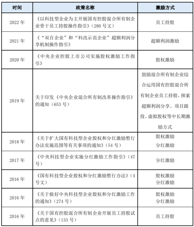 近年来国家十分重视国有企业的中长期激励,也出台了系列政策鼓励国有企业开展中长期激励,系列政策的发布为后续不同类别的企业开展中长期激励提供了政策指引: