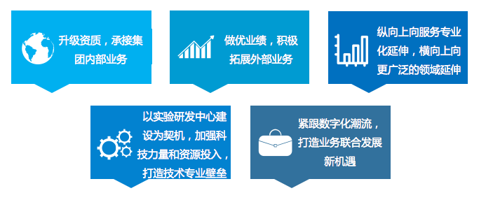 项目组通过对试验检测、工程咨询、工程监理、档案管理四大业务领域深入分析和研究,结合工程咨询业务现状及集团内部资源状况,对各项业务提出明确的功能定位、发展目标及发展路径,解决公司各项业务的总体定位和布局,以及“十四五”未来2年的增长路径。