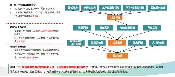 通过在面试过程中,对员工基础条件的判定和评价,形成综合评价结果,综合研究院需求情况、市场薪酬水平和候选人特点等因素,确定新员工薪酬标准。