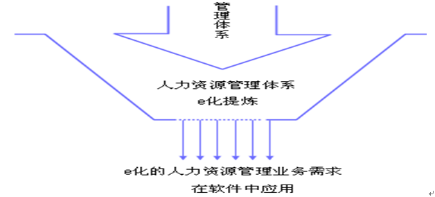 在完成人力资源管理体系的搭建以后,进入信息化咨询需求的提炼阶段。所谓信息化需求的体谅,就是把企业的人力资源管理语言转化为软件开发及实施人员易于理解的技术语言(如业务规则、业务流程、数据项等),并据此选定合适的软件供应商,完成系统的实施工作。