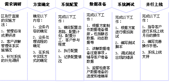 软件选定之后,就要进入实施阶段。软件厂商各有自己的实施方法论,但基本都按照下图所示开展。
