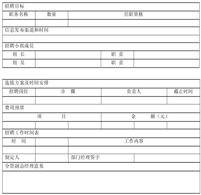 招聘的准备阶段,主要是招聘规划,其主要任务是制定《招聘计划说明书》,其中包括:招聘员工数量、招聘员工素质、招聘目标群体来源、招聘渠道,等等。规范的招聘计划为企业的招聘管理提供了方向,也为招聘工作有步骤、有控制地进行提供了保障基础。
