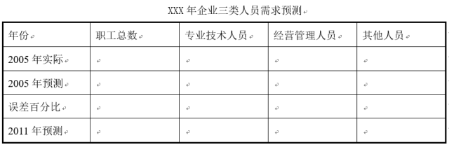 对于人员总量预测,可以根据下表构建误差分析模型进行预测: