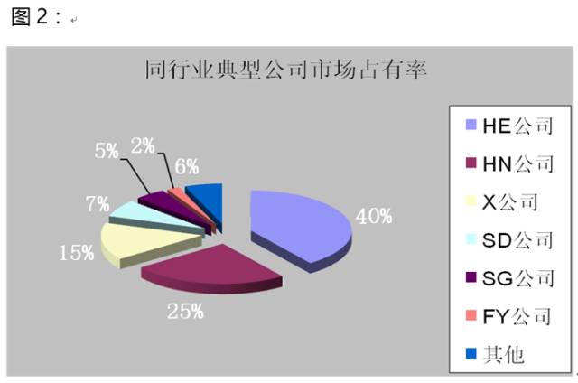 X公司所在行业,国内同行业的对手大致可以分为三大阵营,一是外资企业,二是大型国有企业,三是民营企业,下图就列举了这三类企业中的代表公司的市场占有率,X公司在行业中处于第三位,在他之前的两大公司都是大型外资企业,这说明X公司的市场份额尚可,但要挑战前两者,还有一定的差距和难度。