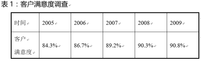 可见,从2005年起,客户满意度都达到满意的程度,并且客户满意度逐年提高,这是一个好的趋势,但是,也应该看到,提高幅度并不大,也没有达到很满意的程度,还有很大的提升空间。
