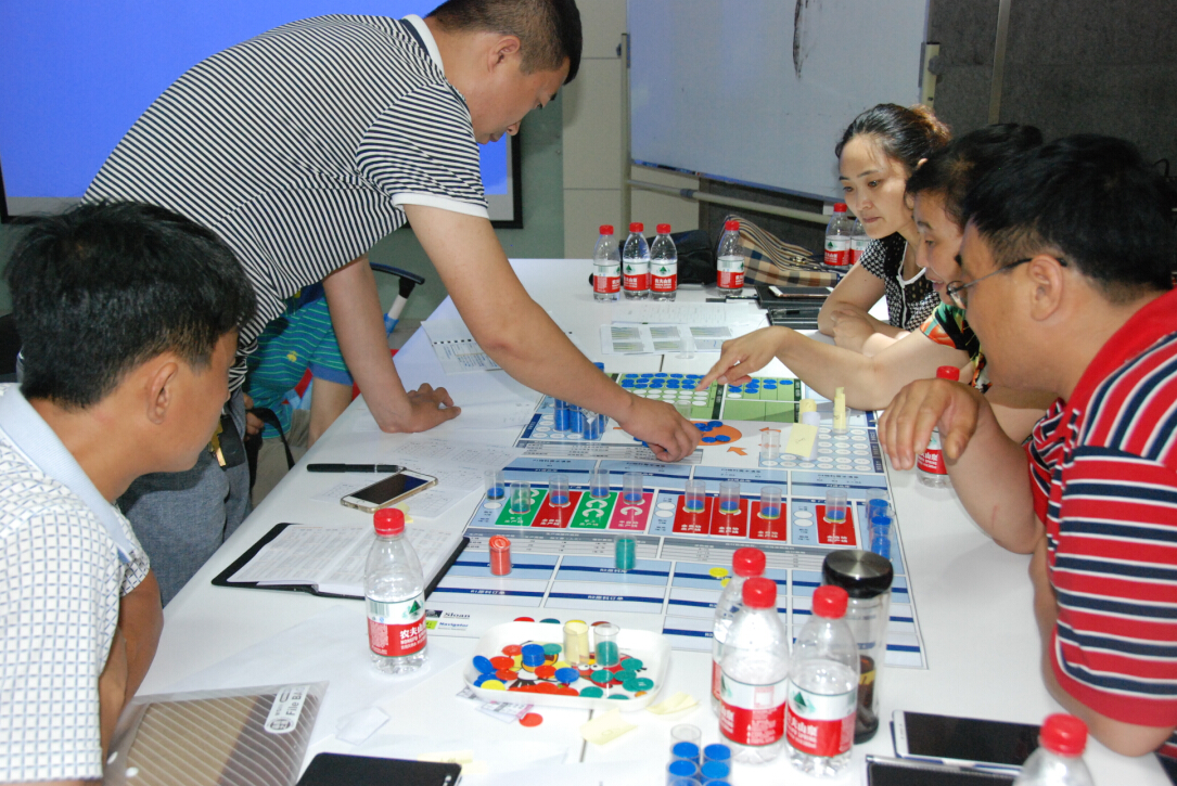 在运营单元,由太阳成集团tyc122cc入口商学院资深讲师汪韦伯老师讲授《企业经营决策沙盘模拟训练》,分为企业决策、预算、营销、控制、成本与定价、把握业务重点、竞争策略与市场博弈、市场博弈与竞争情报、绩效管理与KPI设计等九个模块,采用沙盘教学的方式,让学员亲身参与决策,体会学习要点。