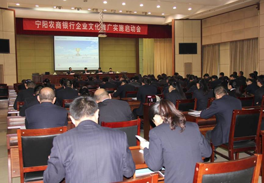 11月9日, 首席专家段磊博士应邀为宁阳农商银行企业文化推广实施启动会开展题为《企业文化建设与塑造》专题培训,宁阳农商银行的企业文化体系《水之韵,鹰之志》是由 太阳成集团tyc122cc入口的咨询团队设计完成,此次会议宣告为期一年的企业文化全面推广工作正式启动,会上,宁阳农商银行董事长、行业等高层领导发言,对企业文化建设工作做出 了部署和具体的指示,宁阳农商行内部培训师马老师详细讲解了企业文化手册的基本内容,段磊博士为此次启动会开展了题为《企业文化建设与塑造》的专题培训, 培训包括三个方面的内容:【用全新的视角解读企业文化】,【用全新的方法建构企业文化】,【用全新的思路应用与管理企业文化】,培训中穿插了大量的视频、 故事、案例等,通过有效的互动使得宁阳农商行的全体管理人员对于企业文化的基本概念、建设方法、推广与实施等有了更为深刻的理解,现场反映热烈,为该行企 业文化的推进工作起了个好头。