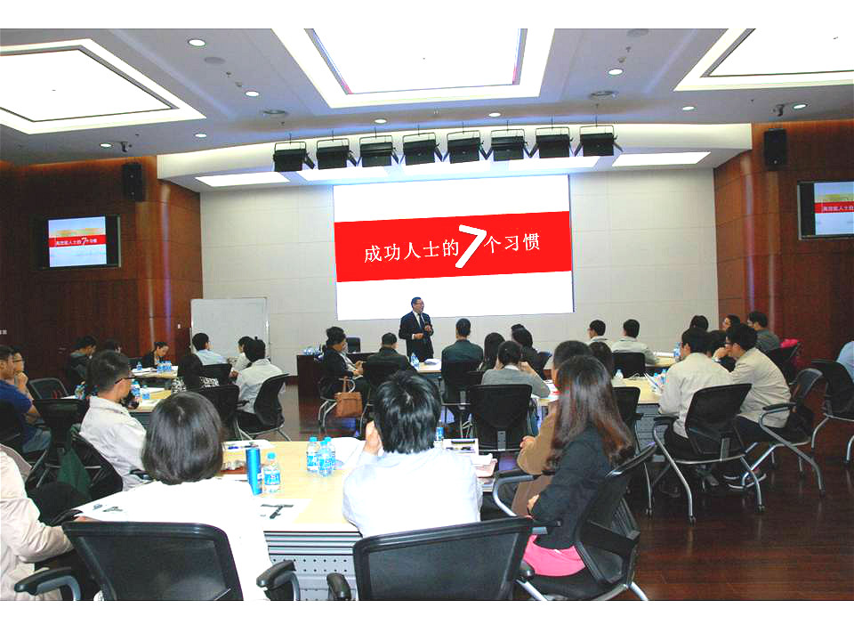 培训由知名领导力专家李中老师主讲,李老师全面讲述了塑造成功人士的七个重要习惯(积极主动、以终为始、要事第一、双赢思维、知彼解己、综合总效、不断更新),并就如何由内而外塑造自身的职业形象进行了系统、全面的讲解。