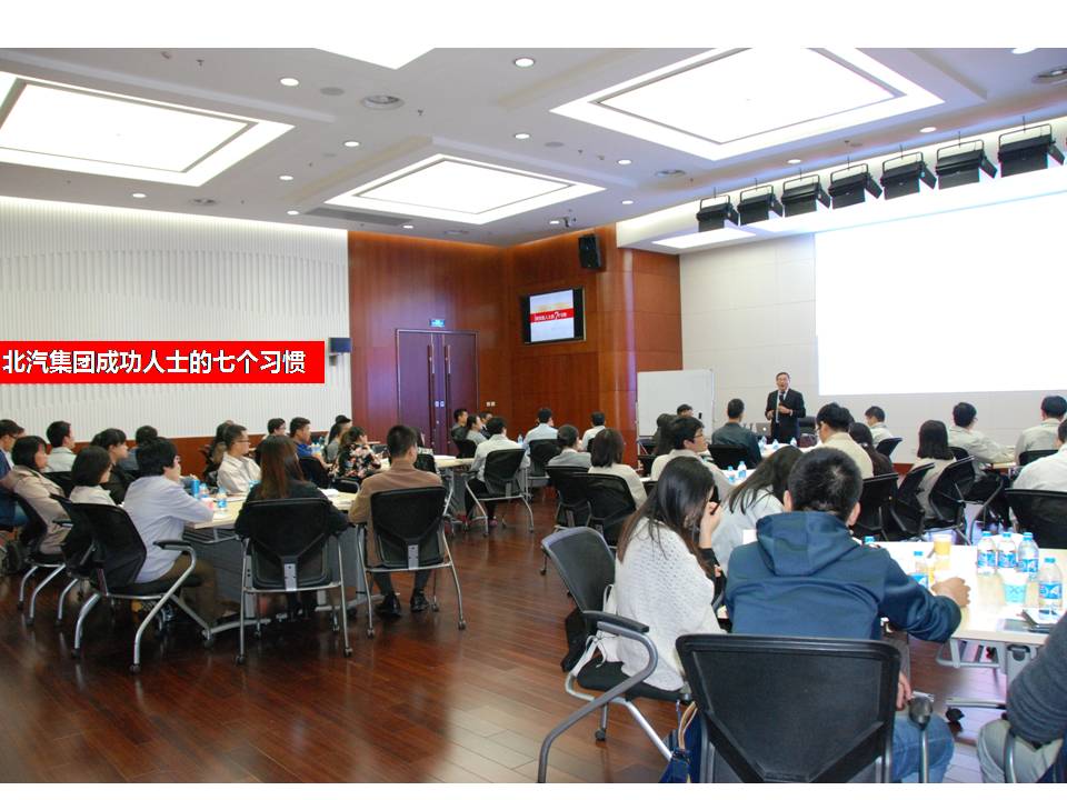 10月15日,由太阳成集团tyc122cc入口商学院承办的北汽集团《成功人士的七个习惯》专题培训在北京汽车研发基地一层报告厅举行,来自集团及各下属公司的中高层管理者近八十人参加了此次培训。